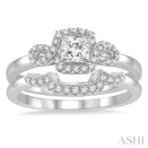 1/2 ctw Diamond Wedding Set with 3/8 ctw Princess Cut Engagement Ring and 1/10 ctw Wedding Band in 14K White Gold
