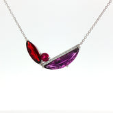 Lady's White 14 Karat Geometric Pendants # of Melee: 15 Melee Carat Weight: 0.11 Melee Quality: HSI Type of Stone: Garnet, Amethyst, Pink Tourmaline Carat Weight: 3.24- $2,400.00