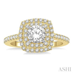 5/8 Ctw Square Shape Semi-Mount Round Cut Diamond Engagement Ring in 14K Yellow and White Gold