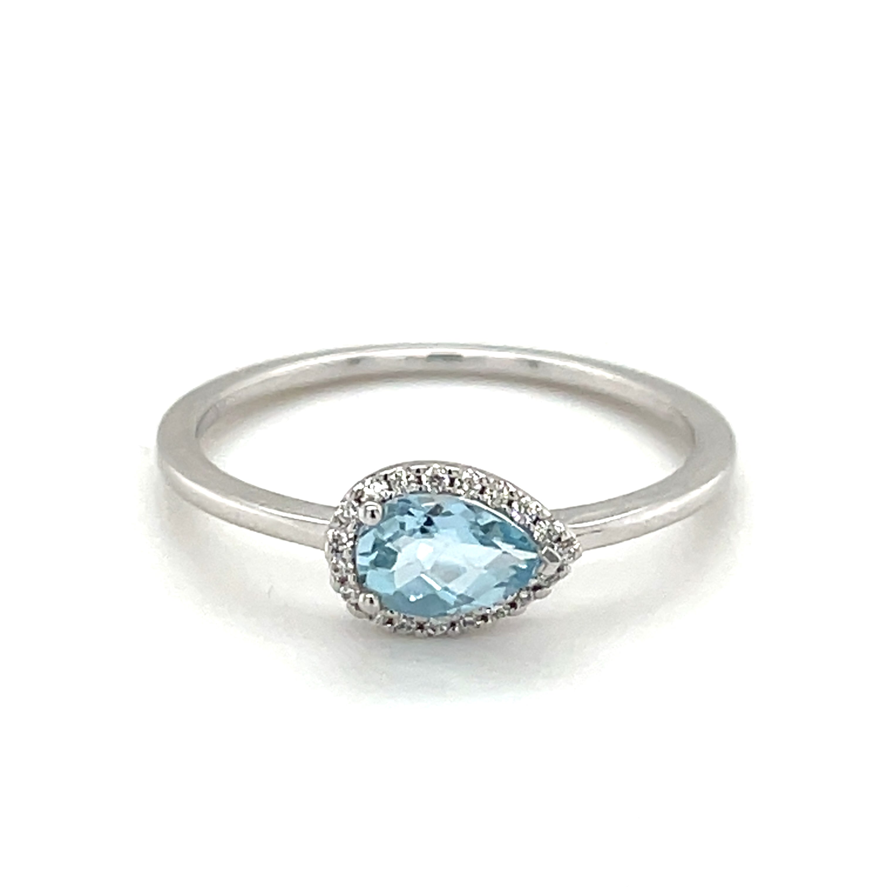 Lady's White 14 Karat Halo Colored Ring Size 0.06 # of Melee: 19 Melee Quality: HSI Major Stone Carat Weight: 0.36 Major Stone Type: Aquamarine