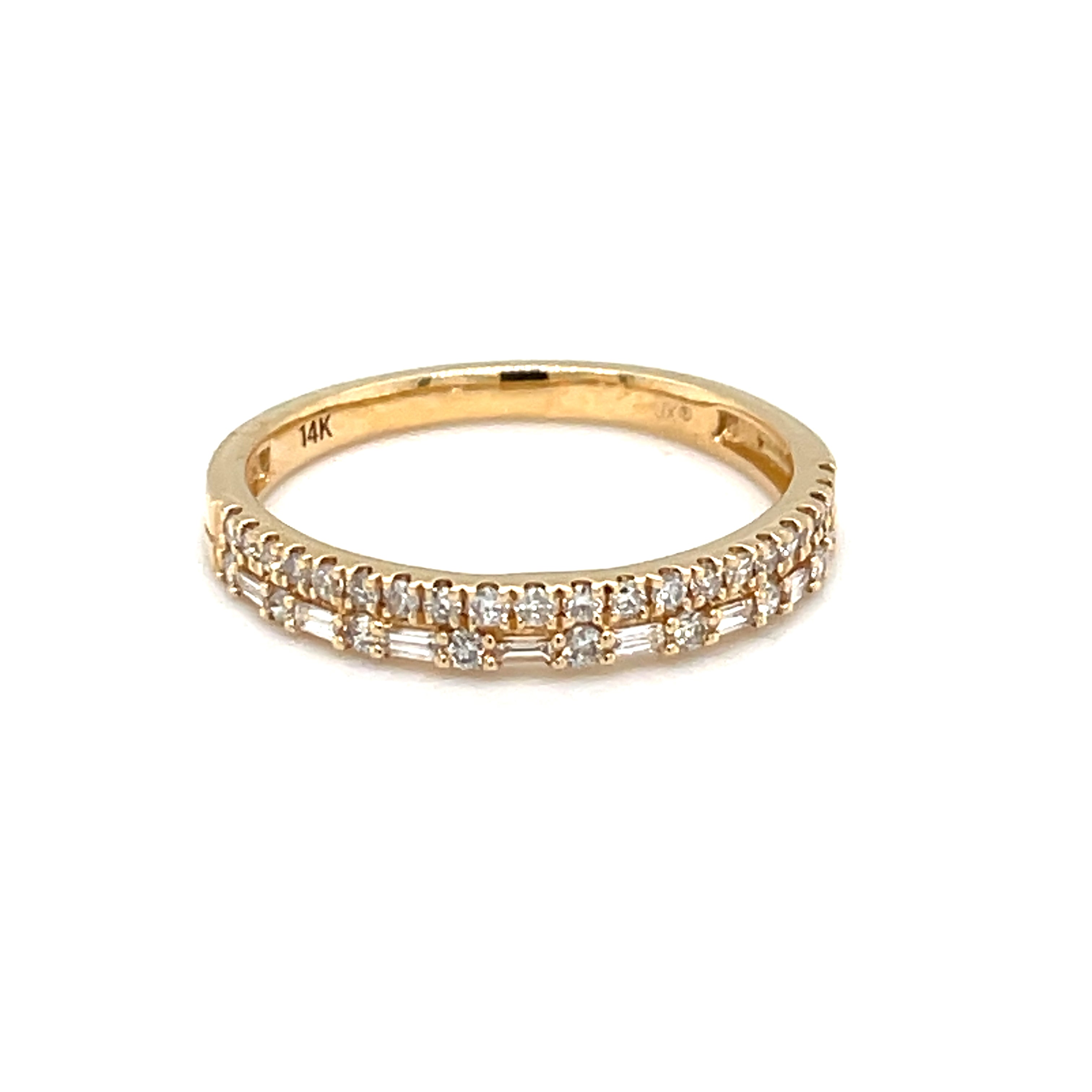 Lady's Yellow 10 Karat Thin Band Diamond Fashion Ring Total Carat Weight: 0.33 Color: I Clarity: SI Ring Size: 3.75