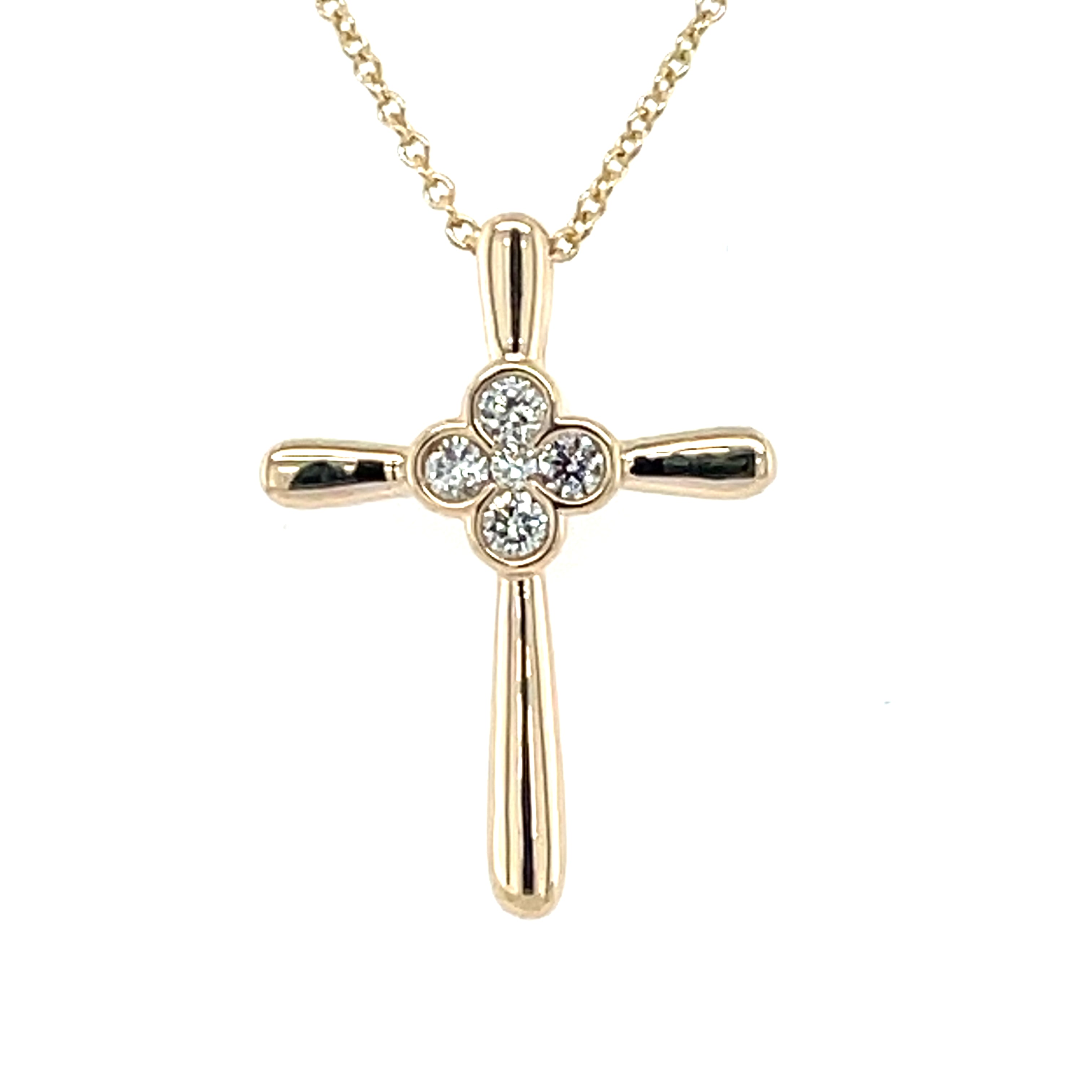 Lady's Yellow 10 Karat Cross Pendant Melee Carat Weight: 0.13 Melee Quality: HSI
