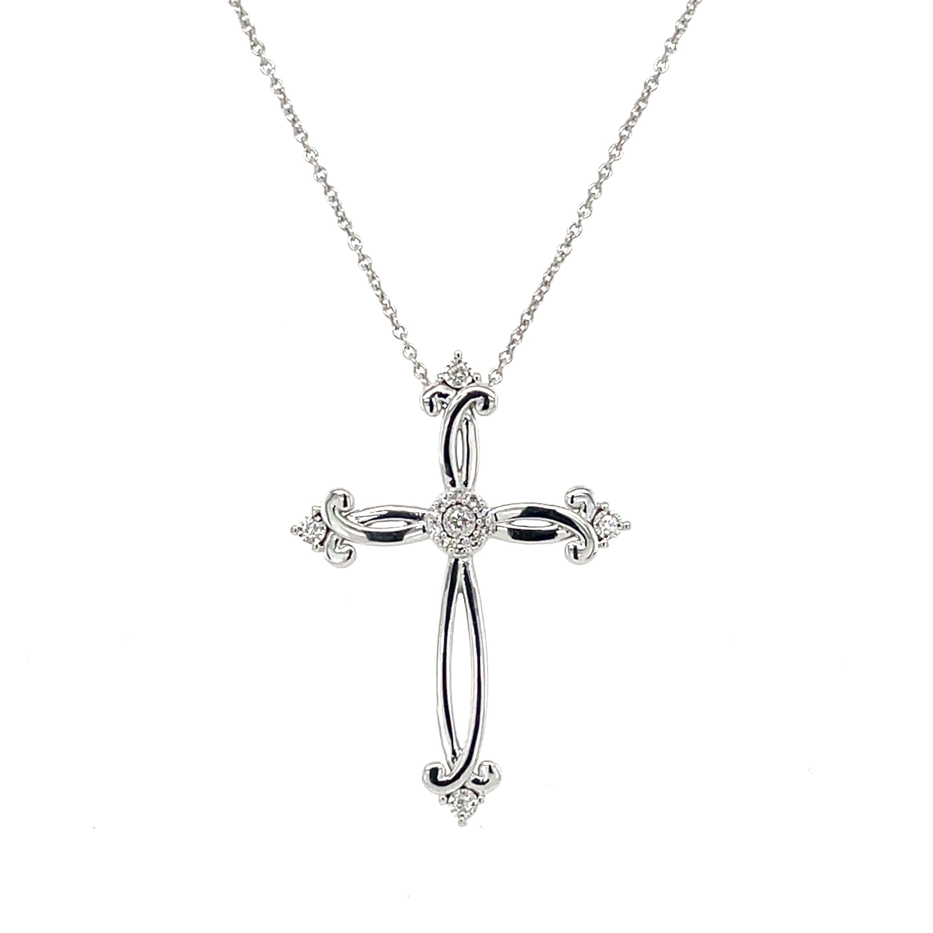 Lady's White Sterling Cross Pendant Melee Carat Weight: 0.08 Melee Quality: HSI