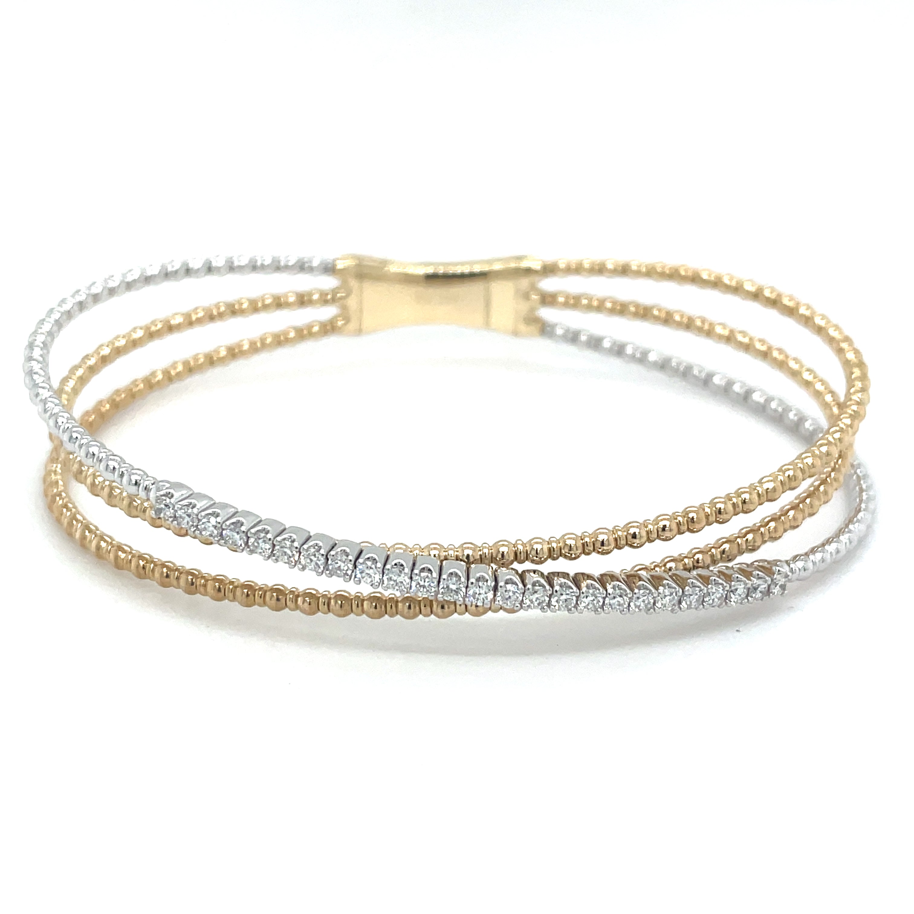Lady's Two Toned 14 Karat Bypass Flex Bangle Bracelet Carat Weight: 0.47 Diamond Quality: HSI