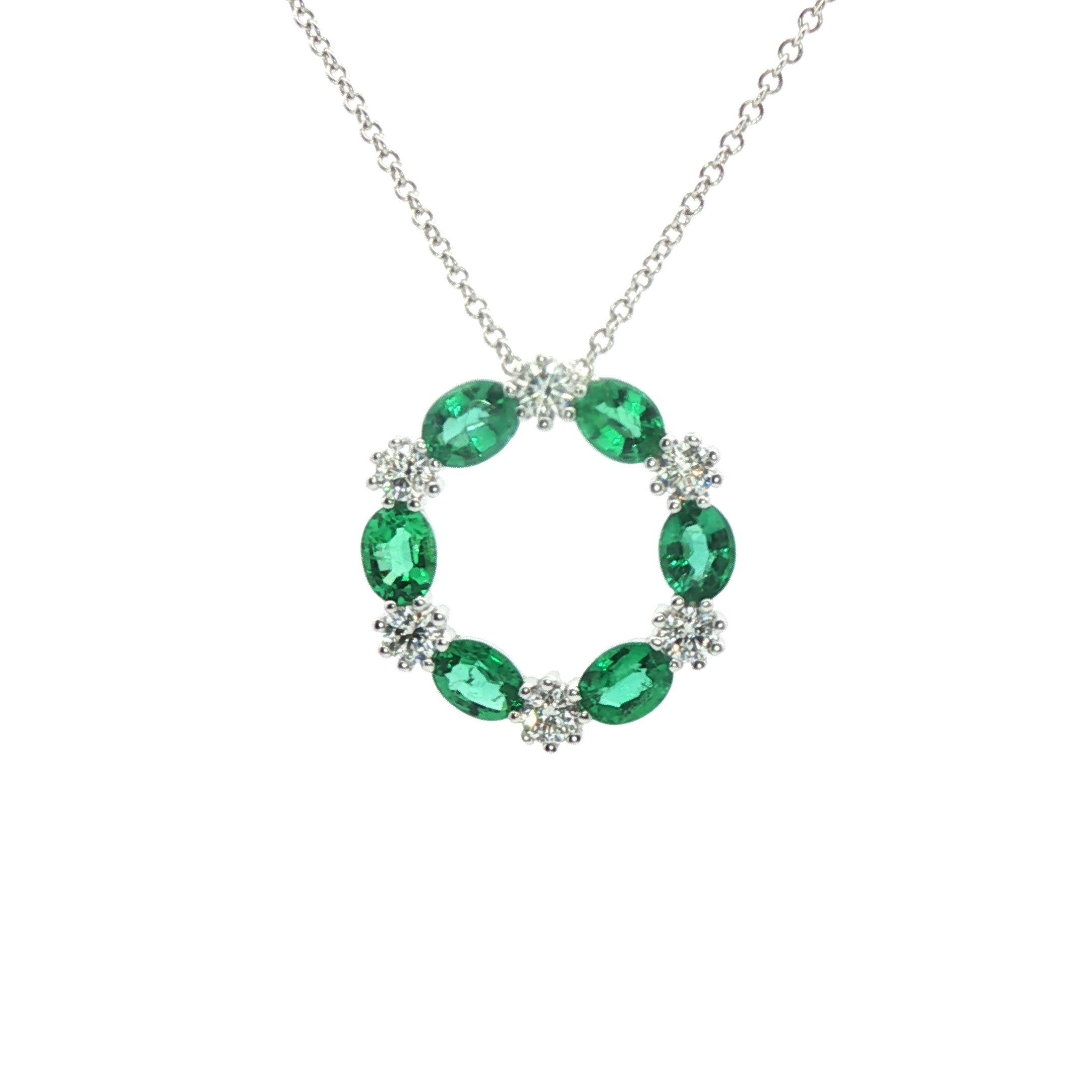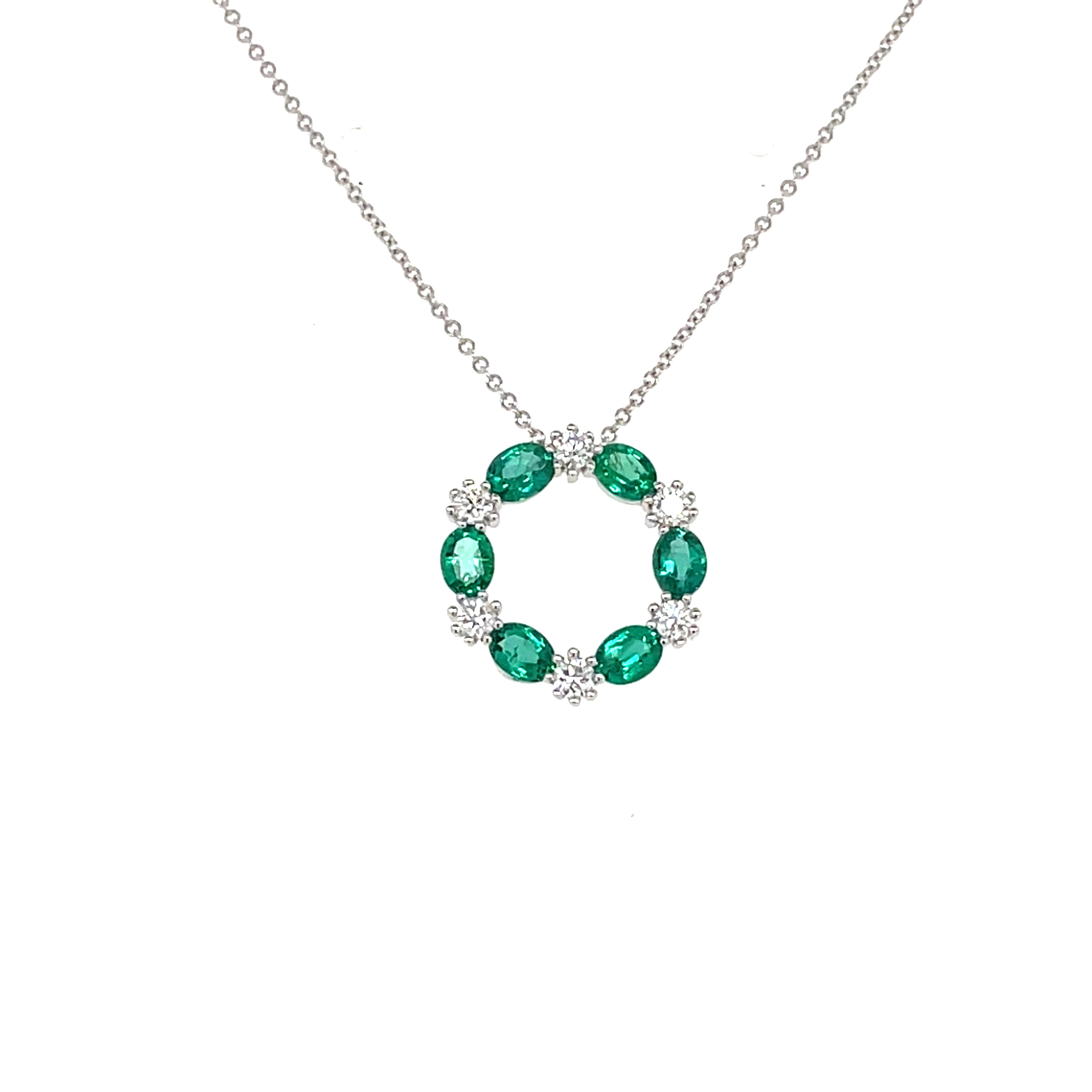 Lady's White 14 Karat Circle Pendants # of Melee: 6 Melee Carat Weight: 0.33 Melee Quality: HSI Type of Stone: Emerald Carat Weight: 1.05 (Six)