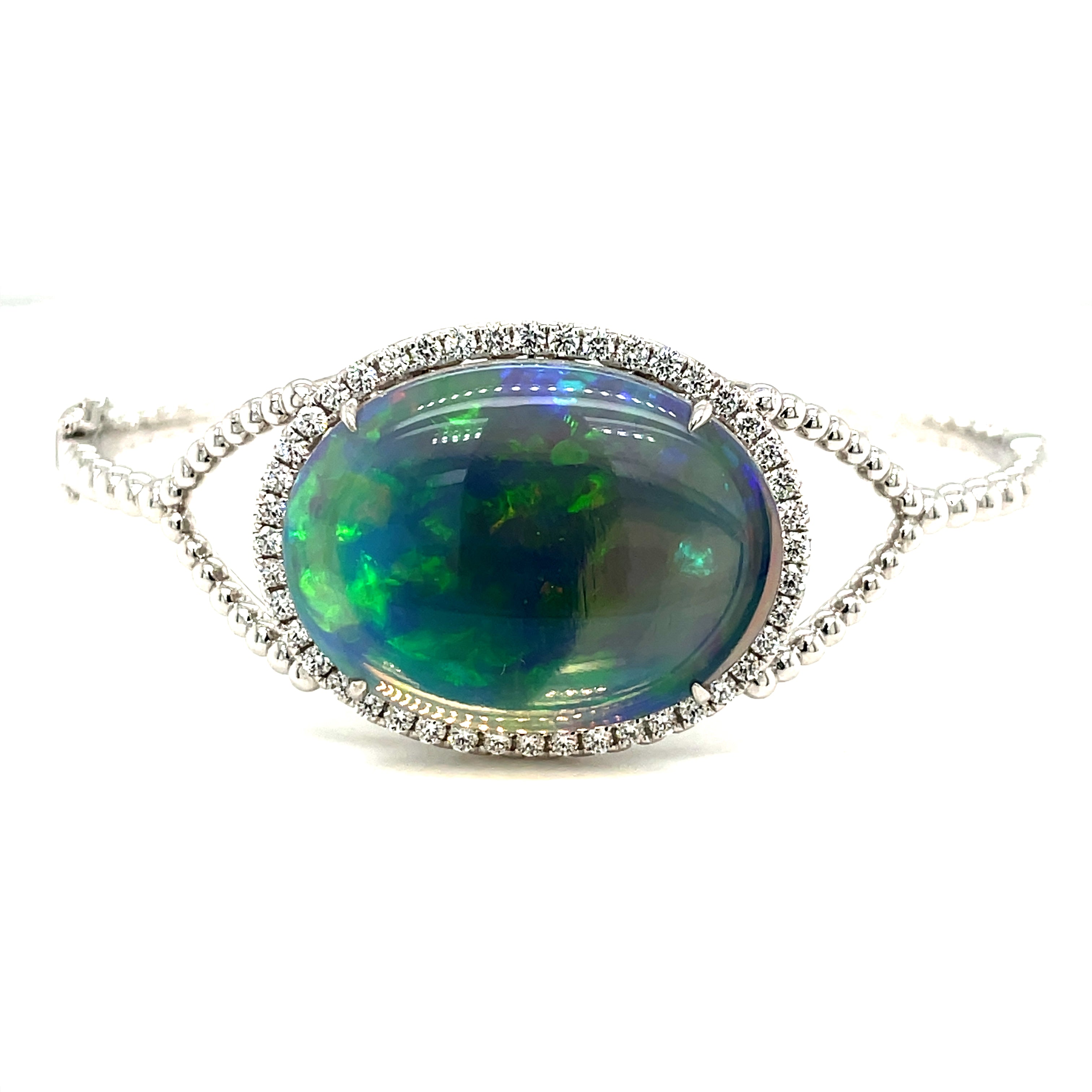 Lady's White 14 Karat Bangle Bracelet Melee Quality: HSI Major Stone Carat Weight: 18.16 Color: Opal