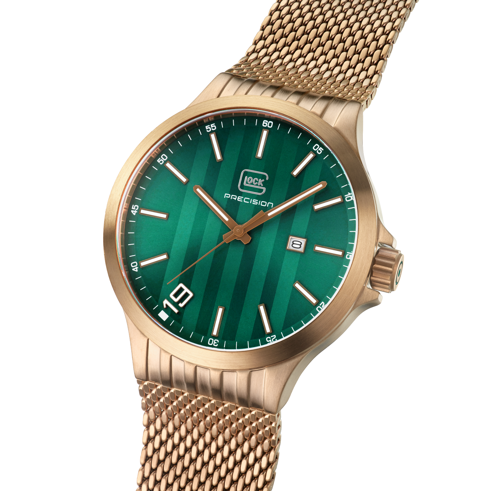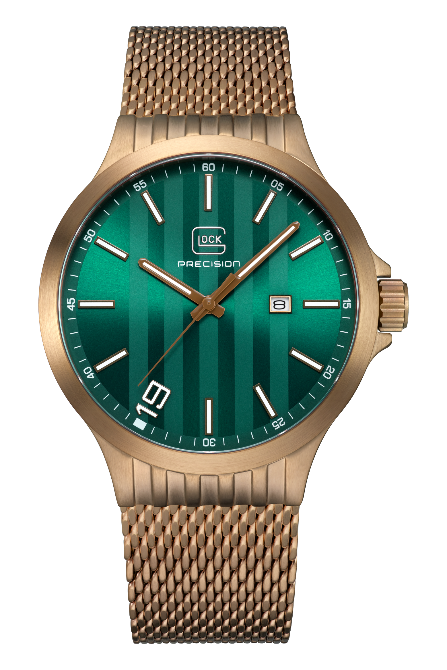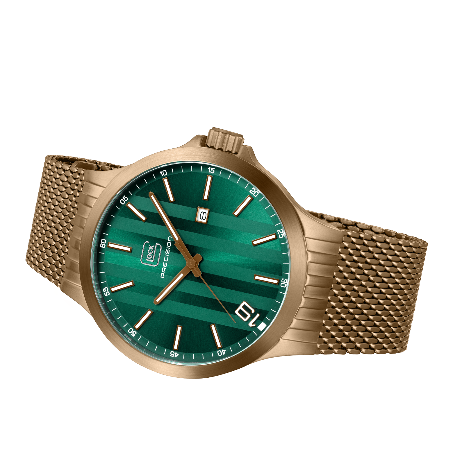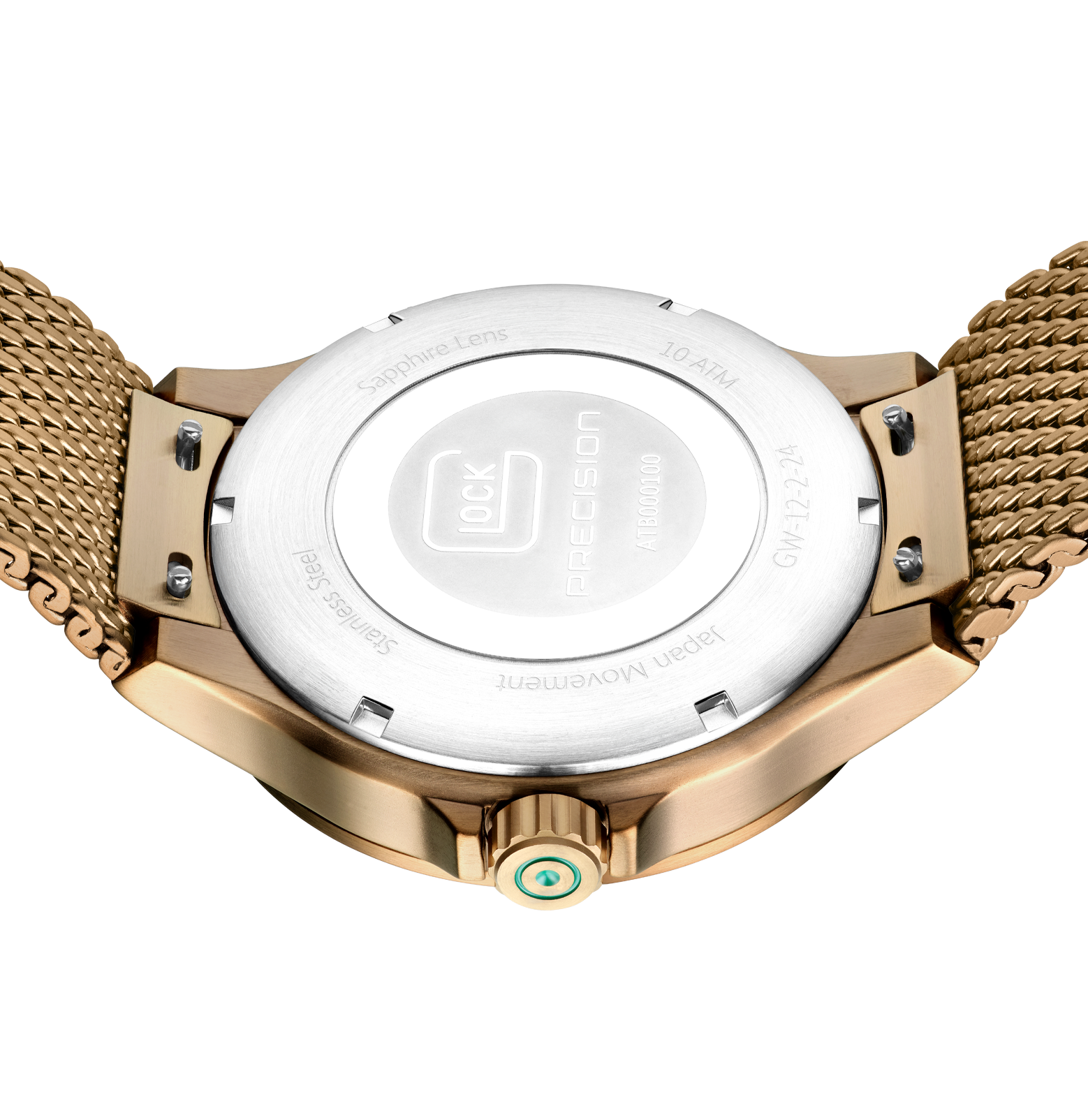 Glock Watches Gender: Gent's Case Size (MM): 44 Strap: Mesh Movement: Quartz Case Color: Brass