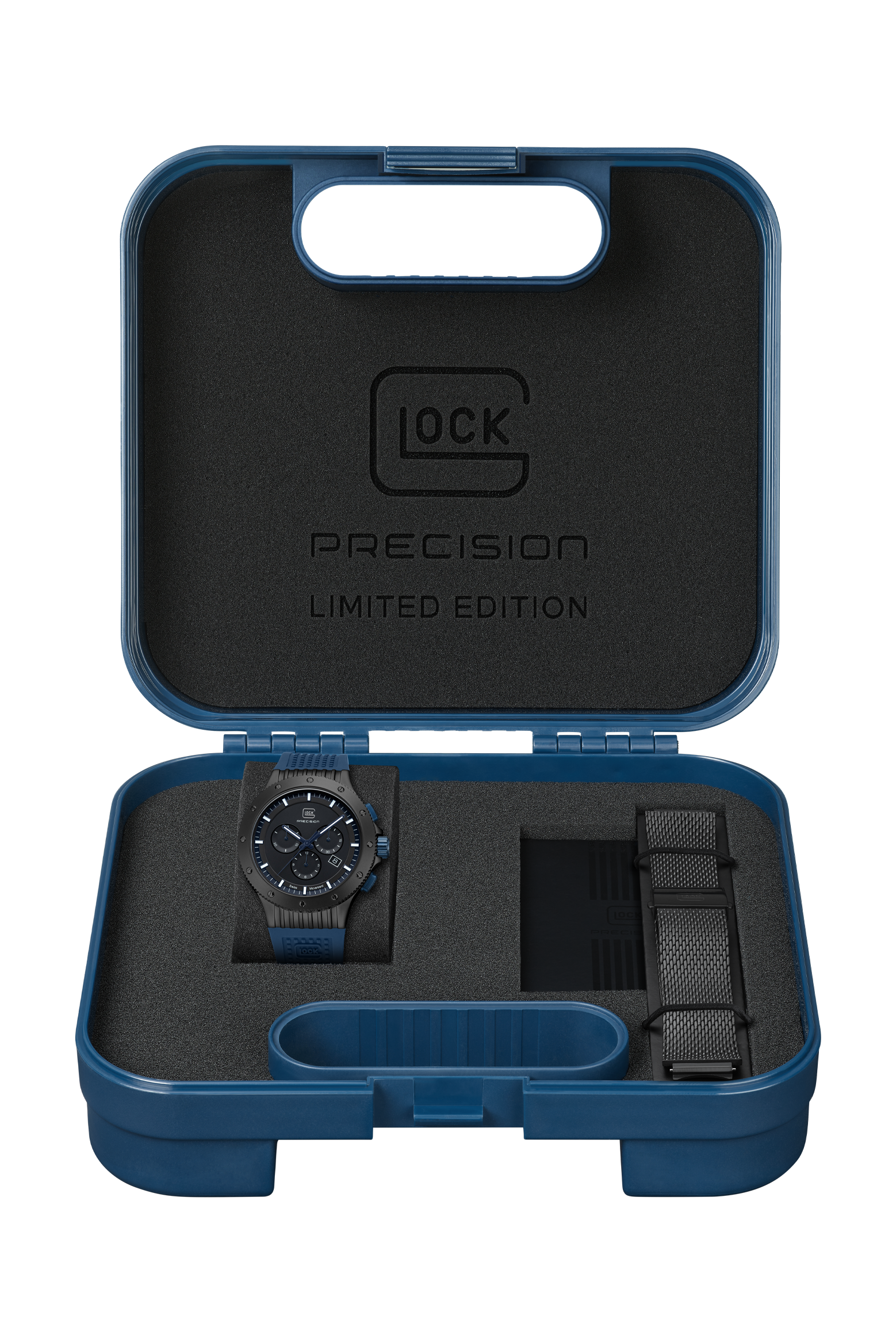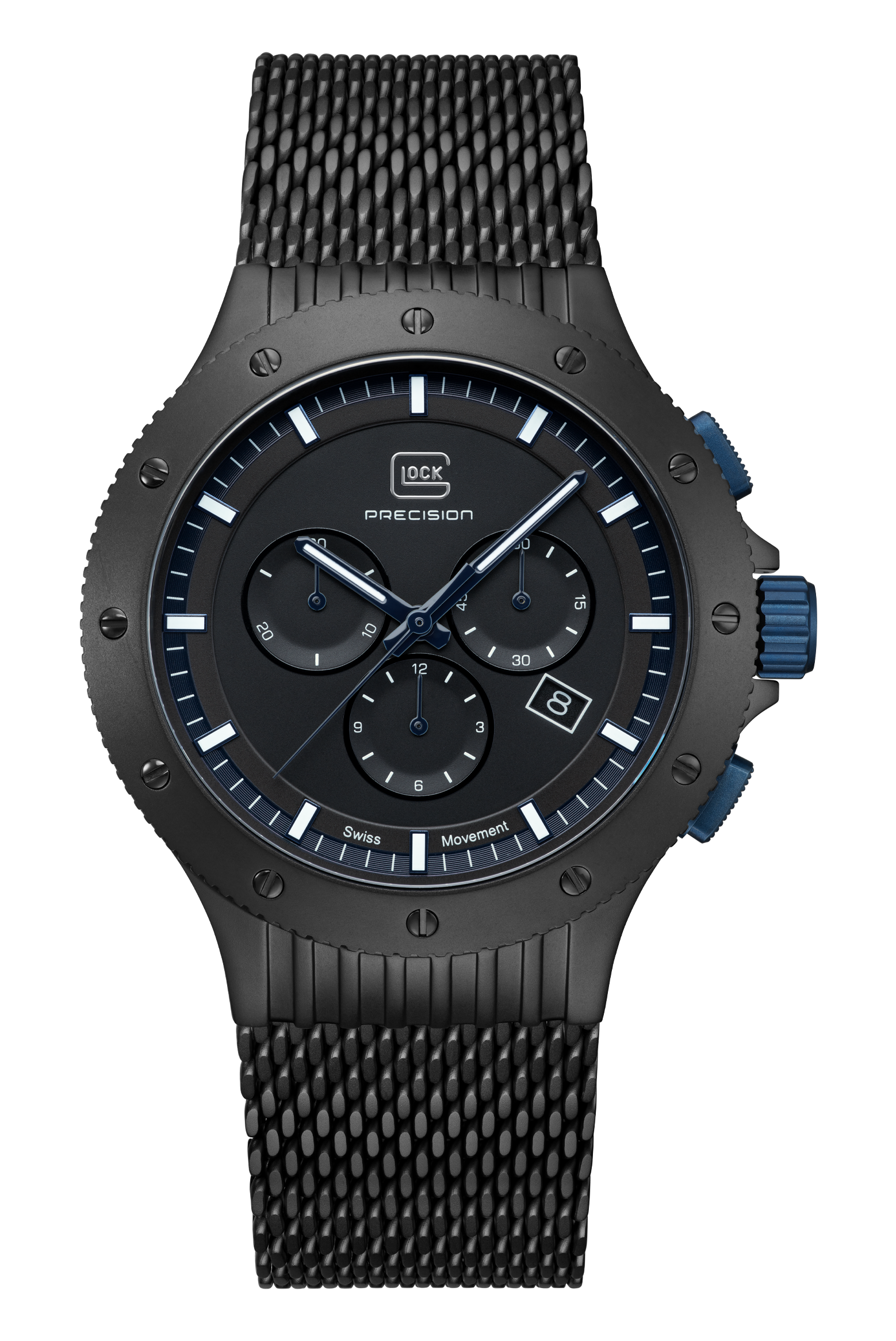Glock Watches Gender: Men's Case Size (MM): 44 Strap: RTF and Mesh Feature(s): Limited to 7500 Movement: Quartz Case Color: Black