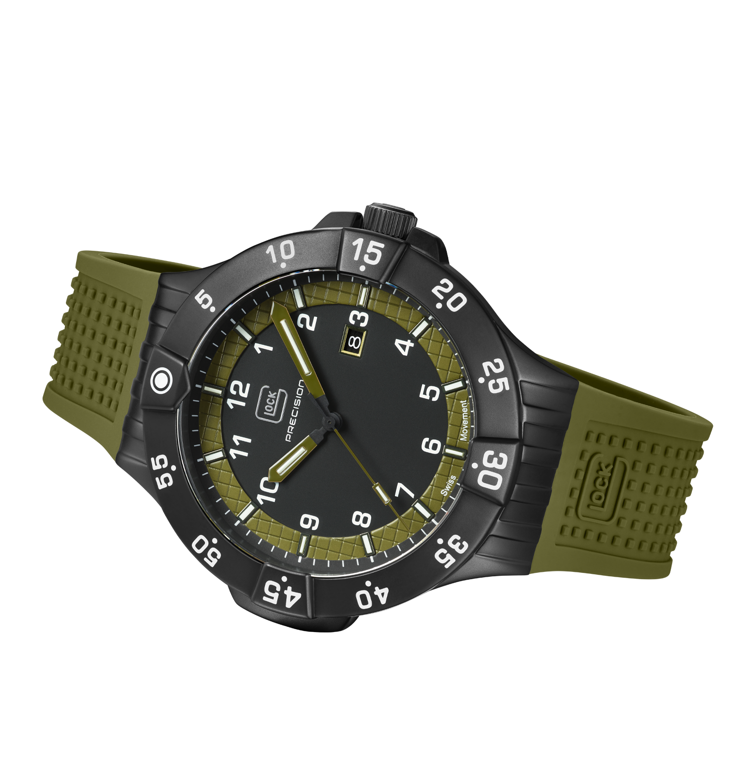 Glock Watches Gender: Men's Case Size (MM): 43 Strap: RTF Movement: Quartz Case Color: Black