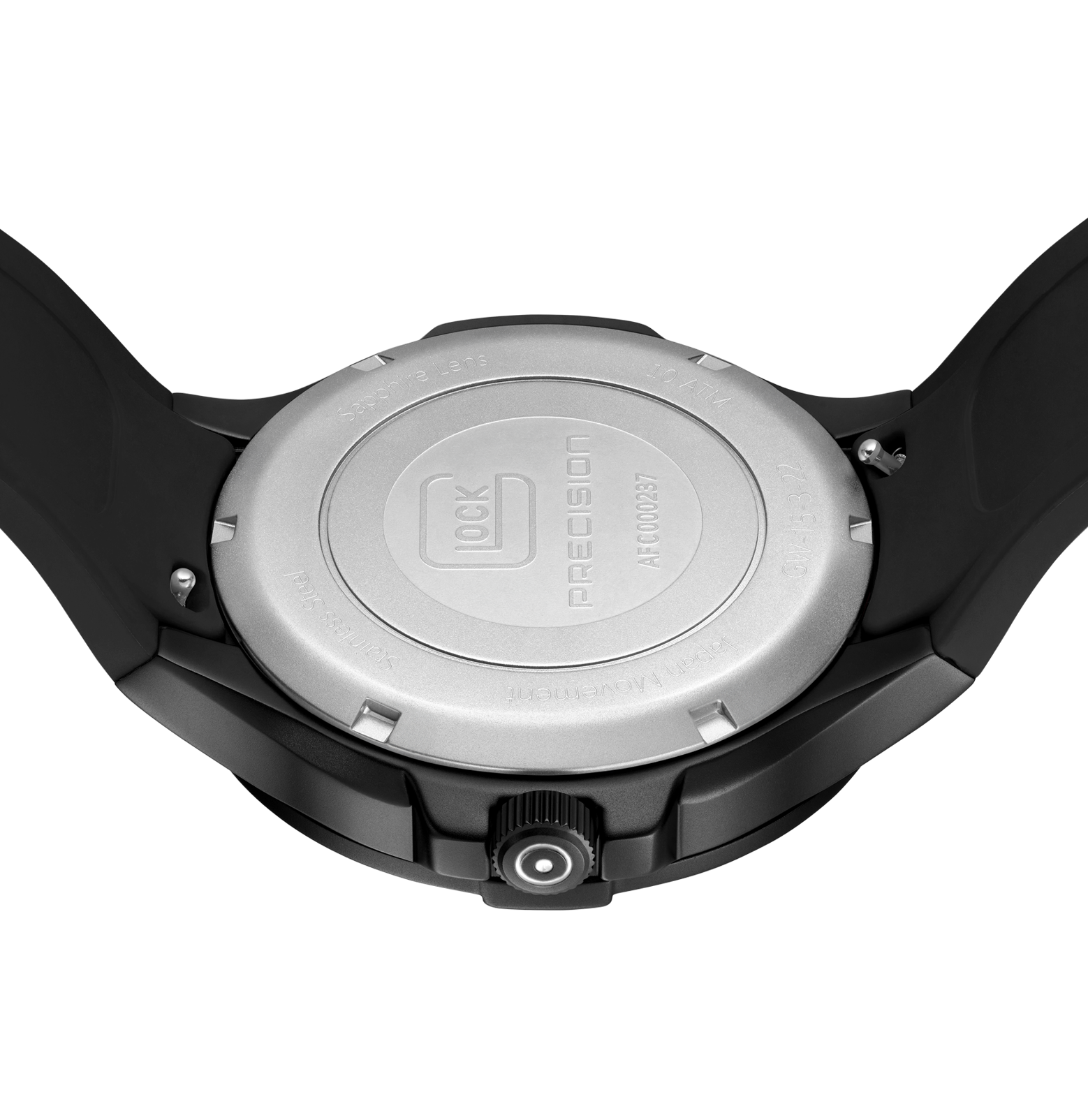 Glock Watches Gender: Men's Case Size (MM): 43 Strap: RTF Movement: Quartz Case Color: Black