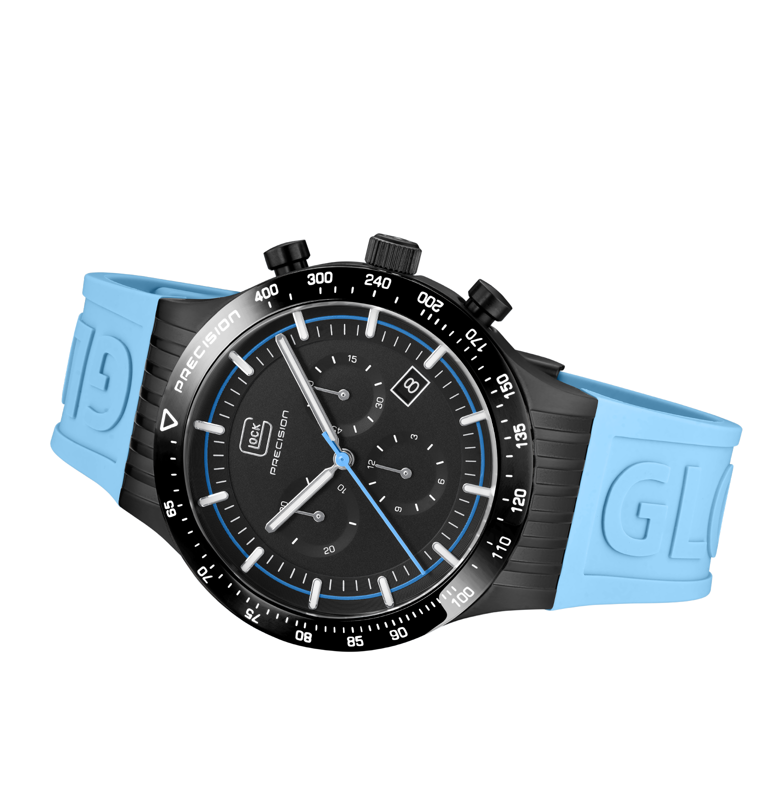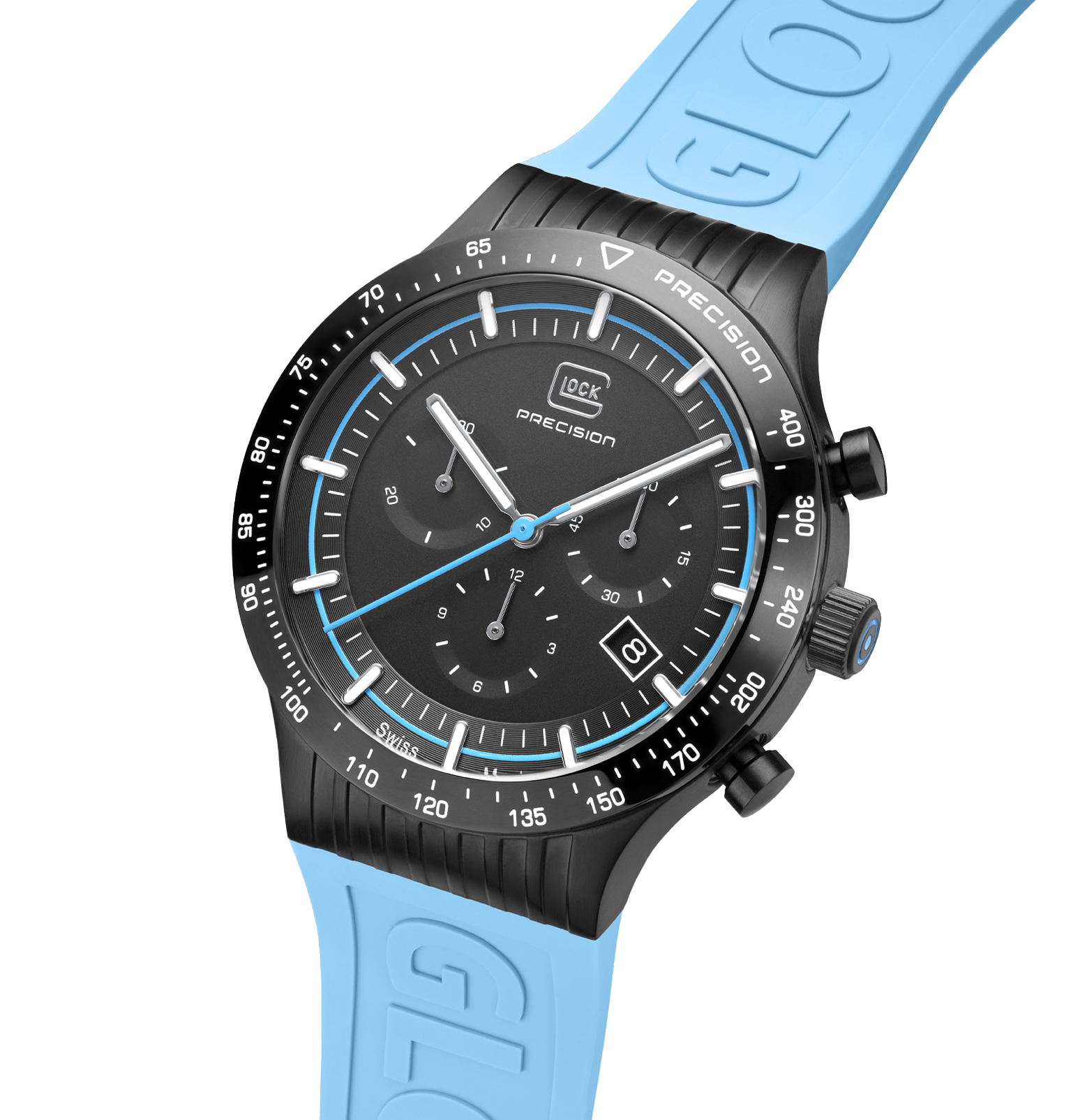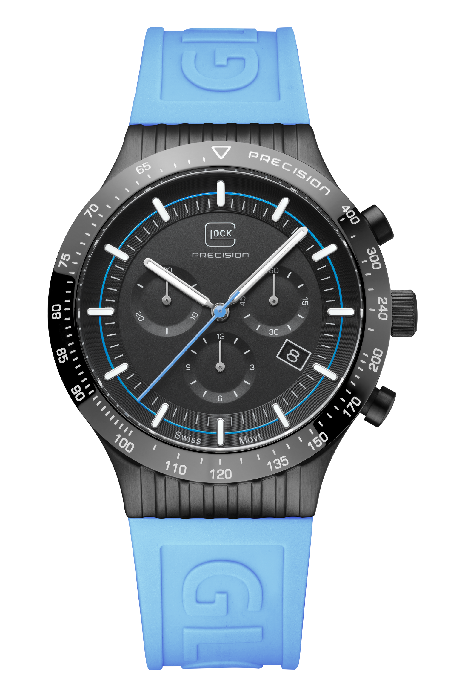 Glock Watches Gender: Men's Case Size (MM): 43 Strap: Logo Feature(s): Super-LumiNova hands and indices Movement: Quartz Case Color: Black
