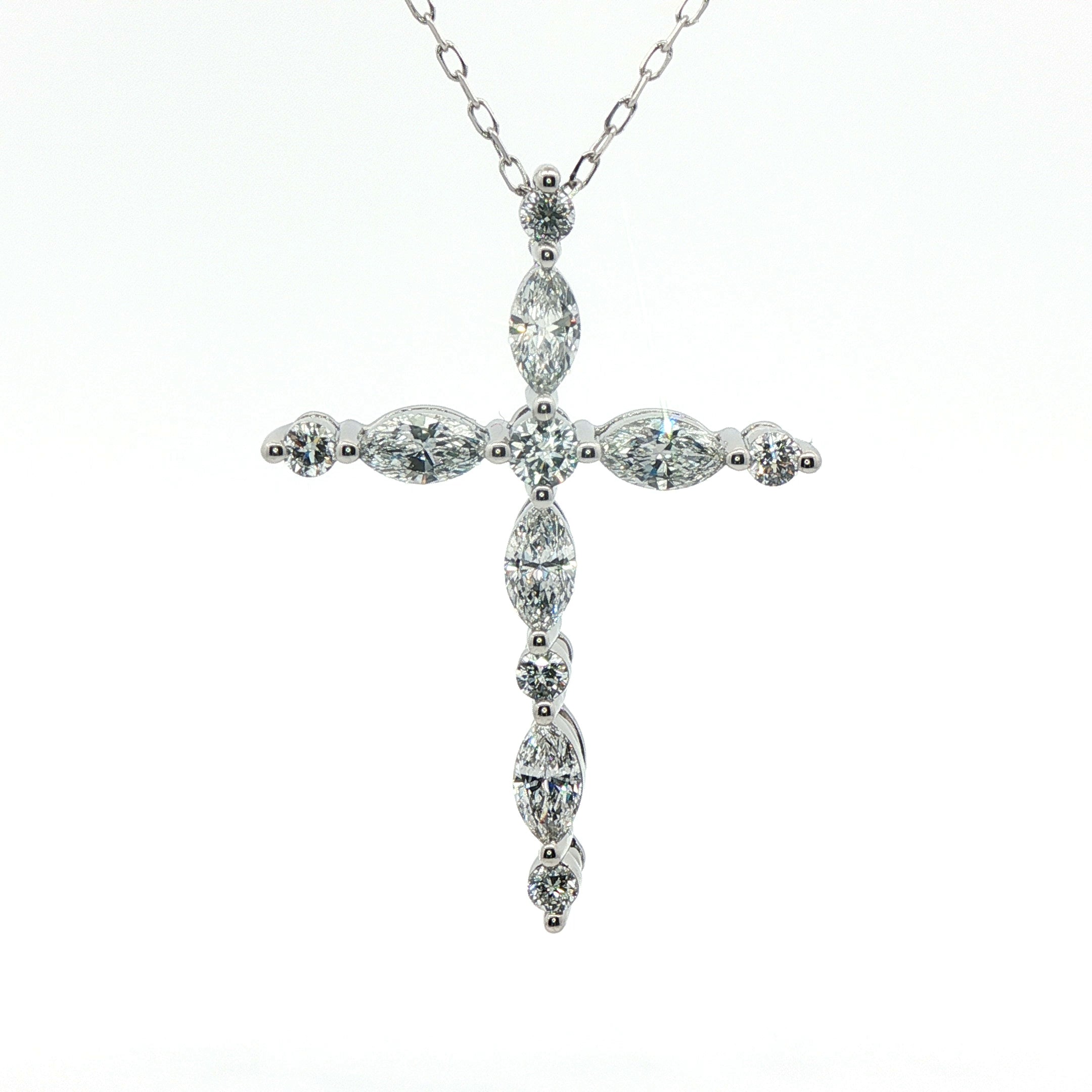 Lady's White 10 Karat Cross Pendant Melee Carat Weight: 1.05 Melee Quality: FVS Lab Grown
