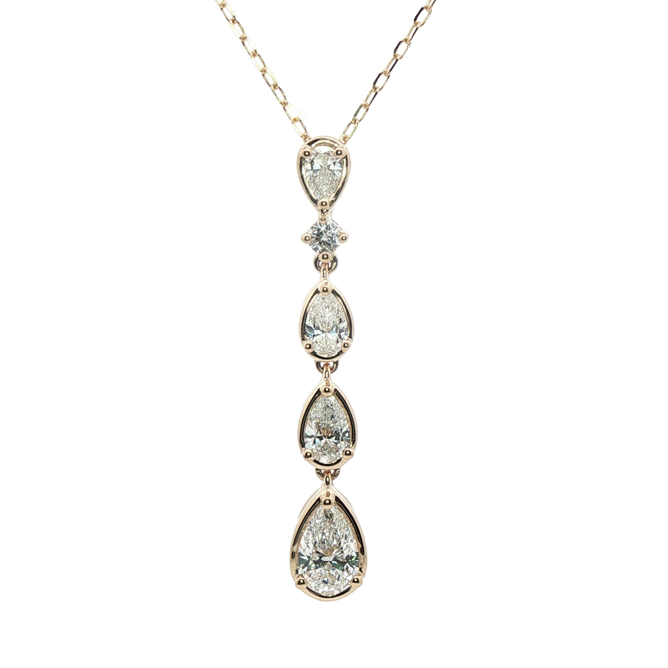 Lady's Yellow 10 Karat Drop Pendant Melee Carat Weight: 0.54 Melee Quality: FVS Lab Grown Major Shape: Pear Major Carat Weight: 0.5 Color: F Clarity: VS Lab: Lab Grown