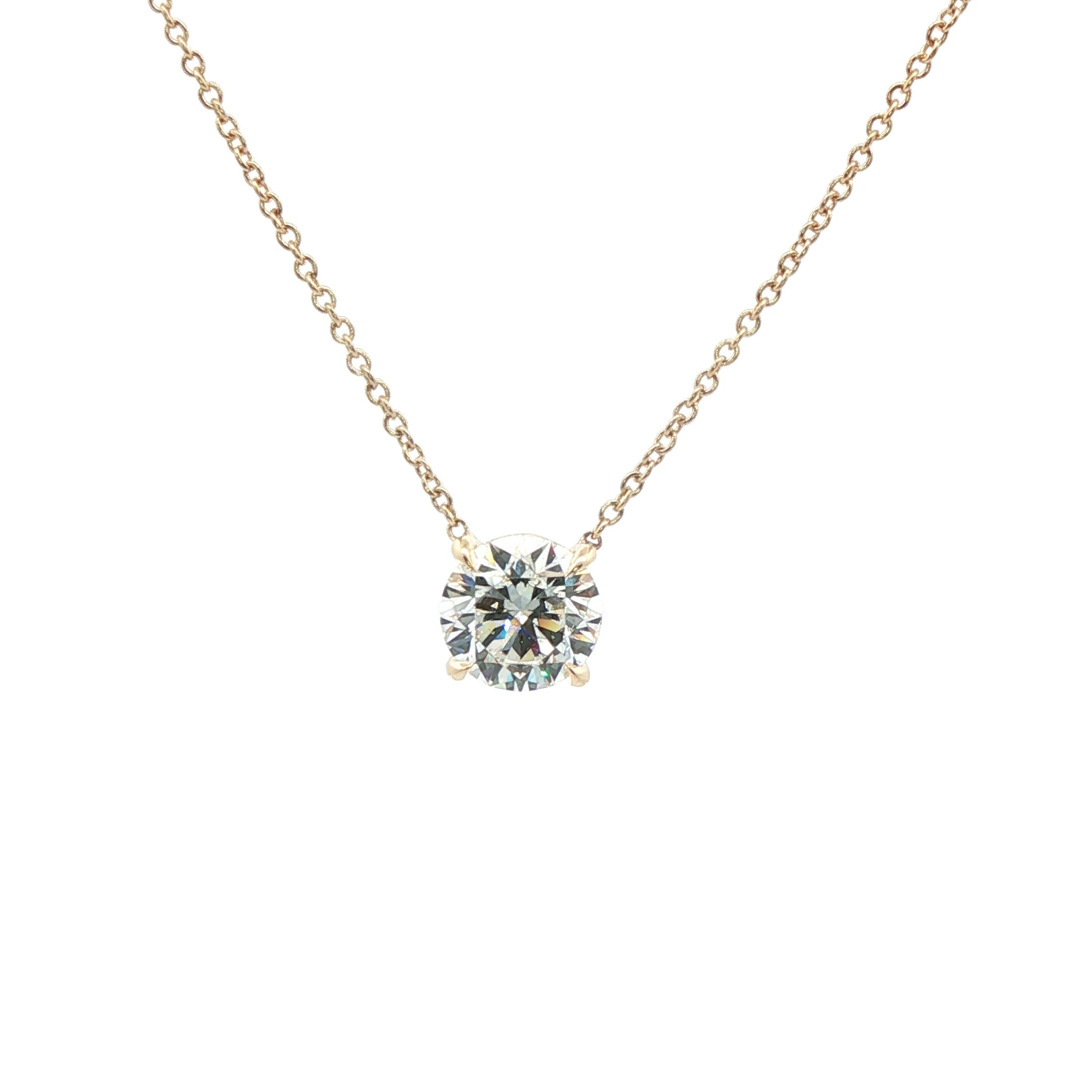 Lady's Yellow 14 Karat Solitaire Pendant Major Shape: RBC Major Carat Weight: 1.03 Color: F Clarity: VS Lab: Lab Grown