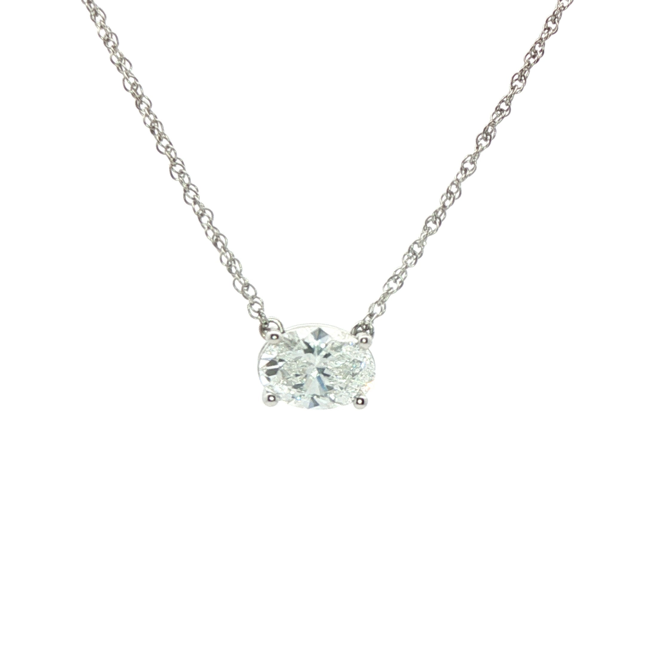 Lady's White 14 Karat Solitaire Pendant Major Shape: Oval Major Carat Weight: 1.03 Color: F Clarity: VS Lab: Lab Grown