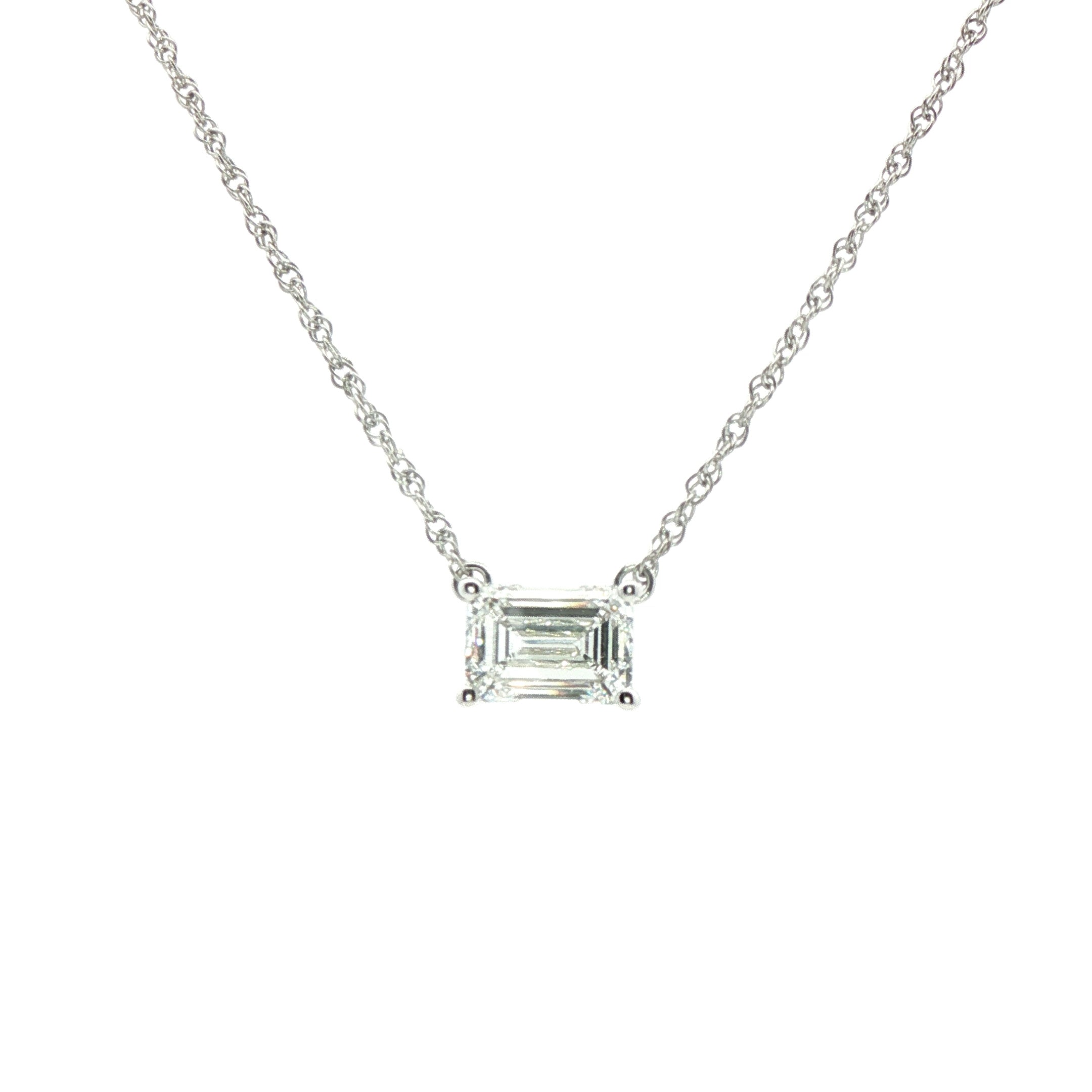 Lady's White 14 Karat Solitaire Pendant Major Shape: Emerald Cut Major Carat Weight: 1 Color: F Clarity: VS Lab: LAB GROWN