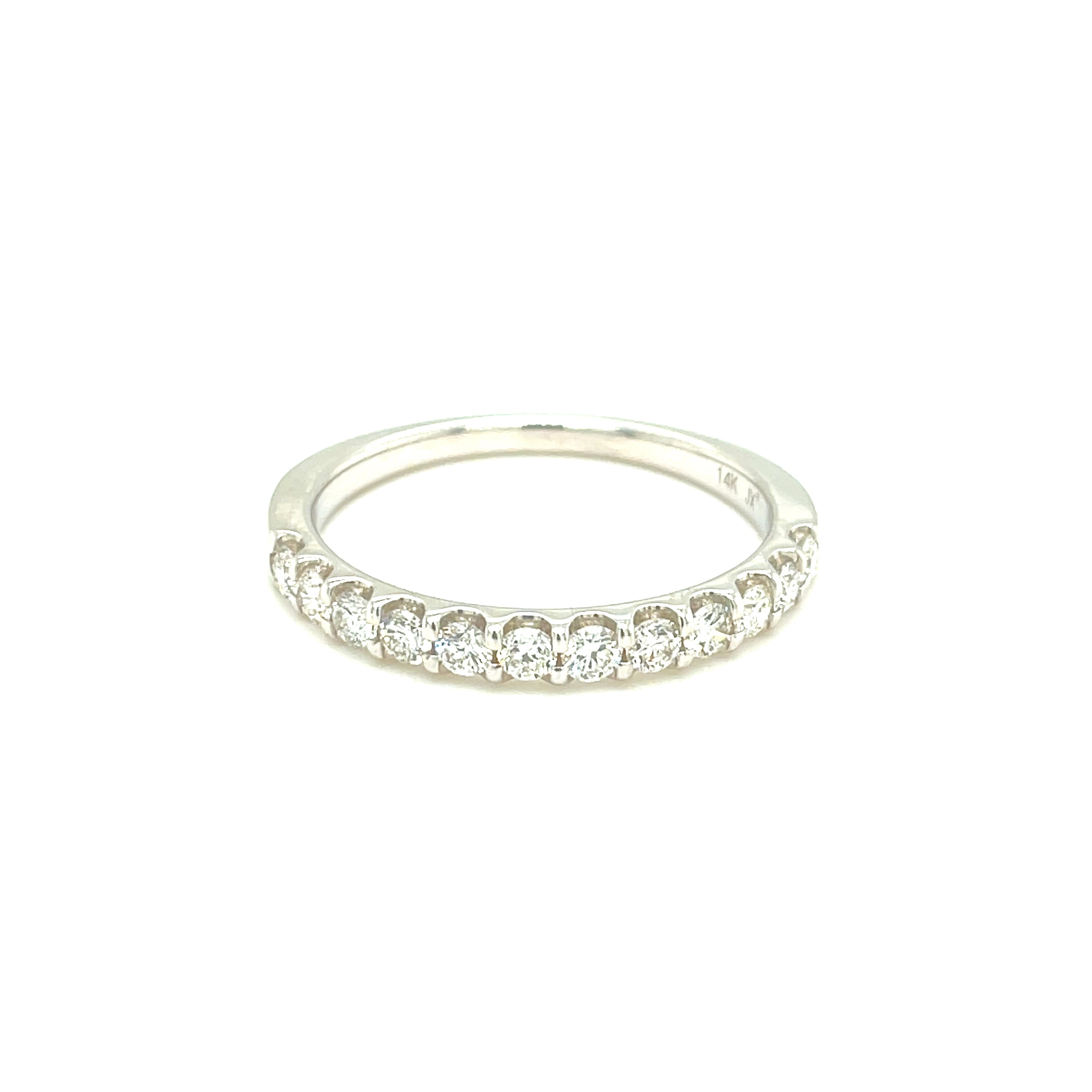 Lady's White 14 Karat Prong Set Wedding Band Size 7 # of Diamonds: 12 Carat Weight: .50 Color: H Clarity: SI2