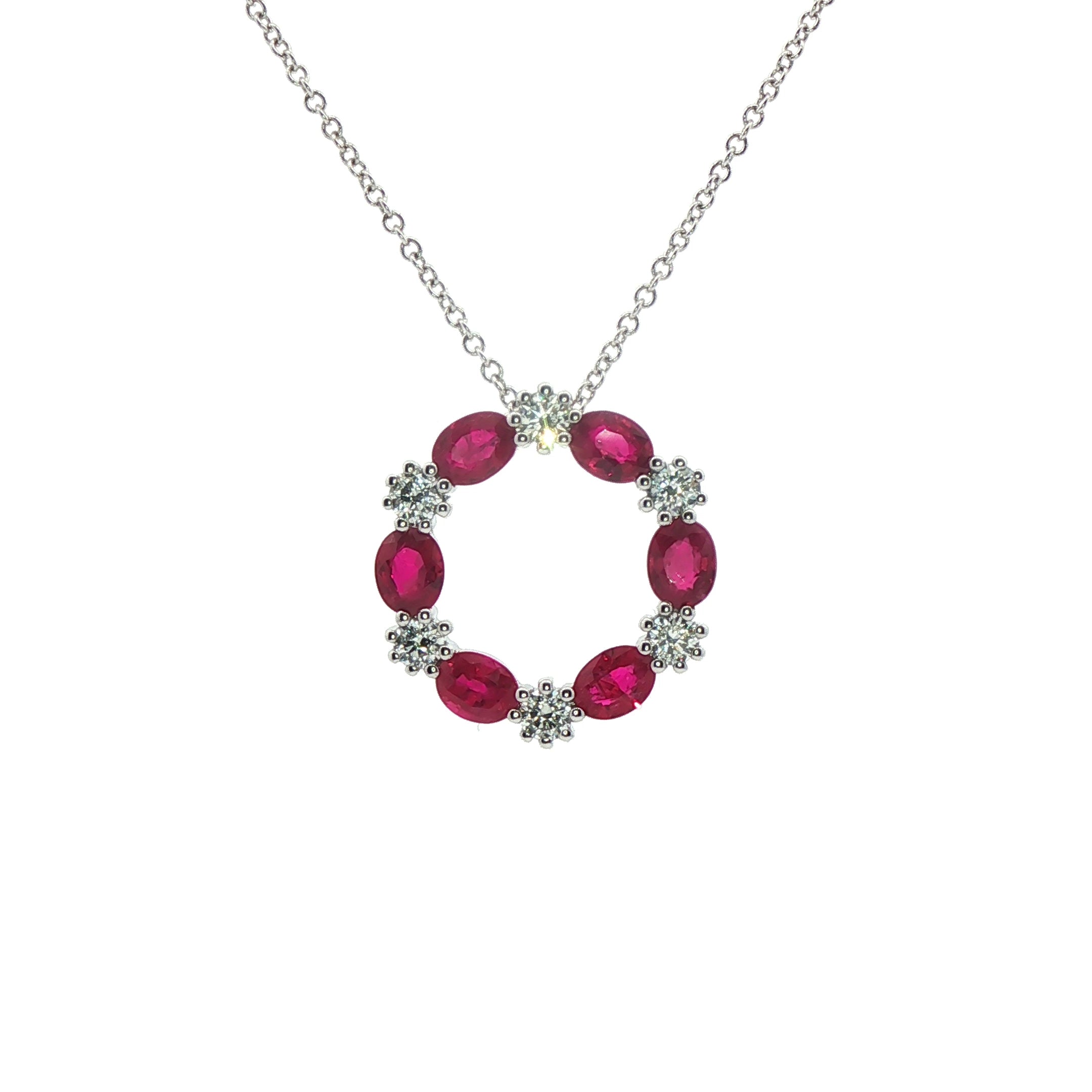 Lady's White 14 Karat Circle Pendants # of Melee: 6 Melee Carat Weight: 0.30 Melee Quality: HSI Type of Stone: Ruby Carat Weight: 1.22 (6)