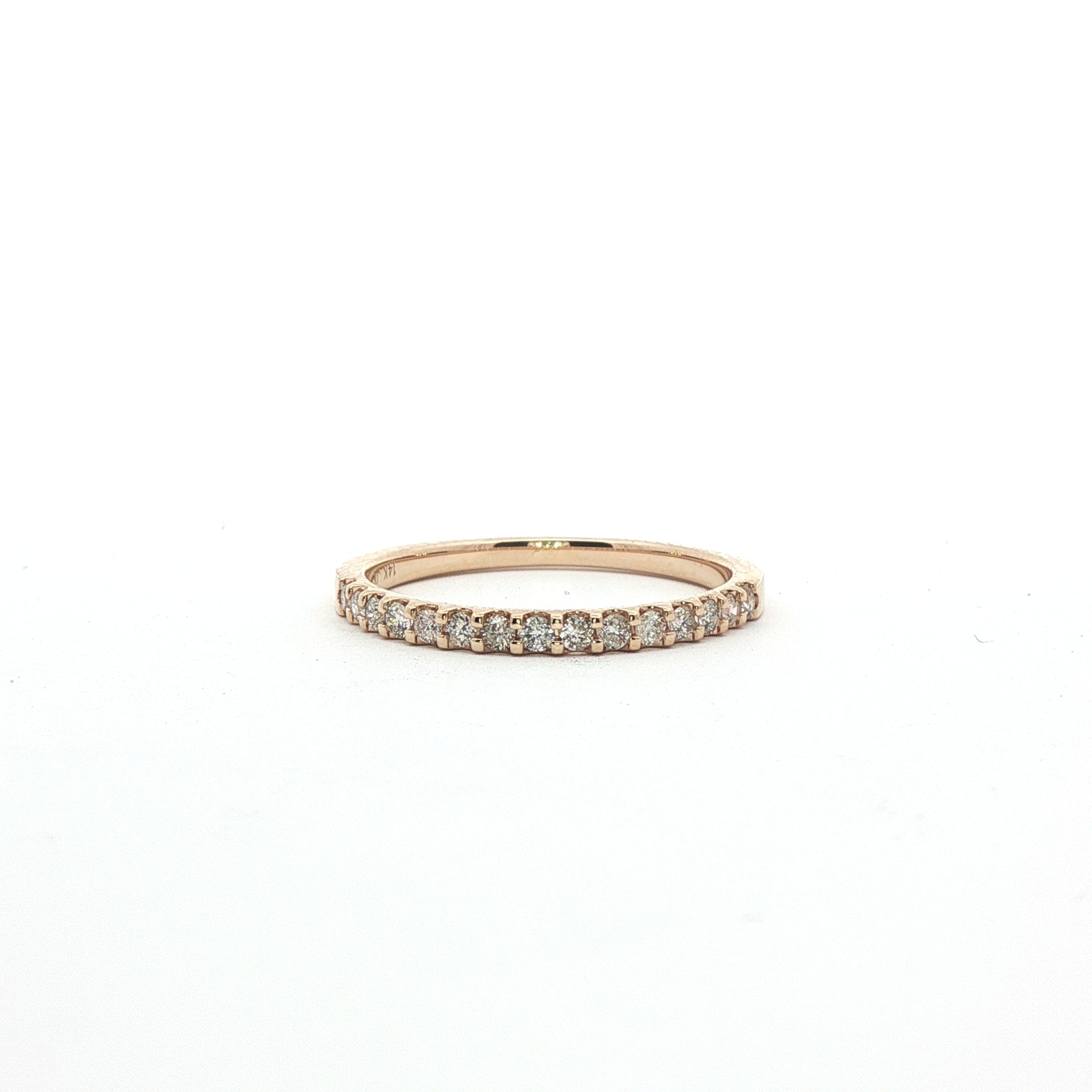 Lady's Yellow 14 Karat Shared Prong Wedding Band Size 7 # of Diamonds: 15 Carat Weight: 0.25 Color: H Clarity: SI2