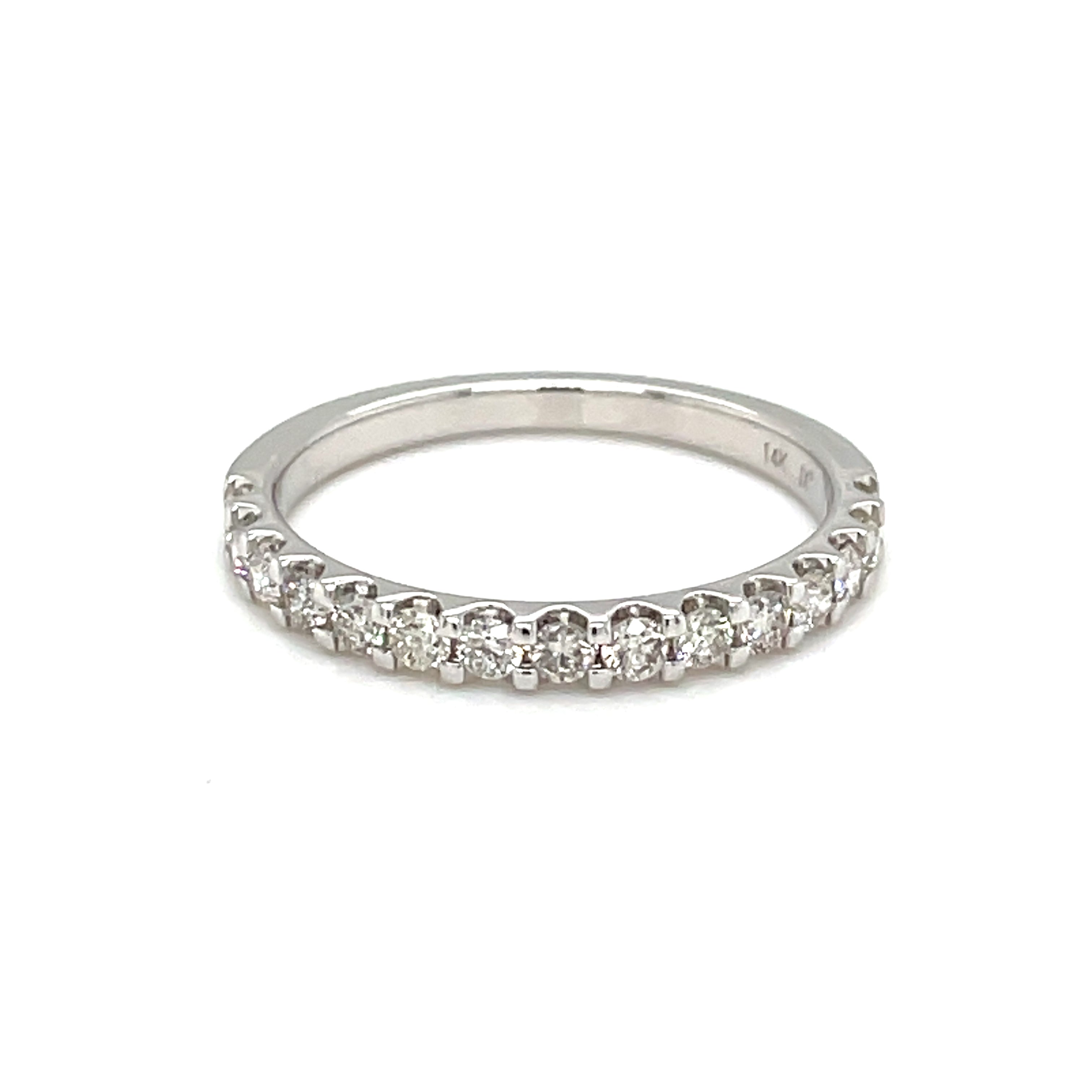 Lady's White 14 Karat Half Round Wedding Band Size 7 # of Diamonds: 15 Carat Weight: 0.50 Color: H Clarity: SI
