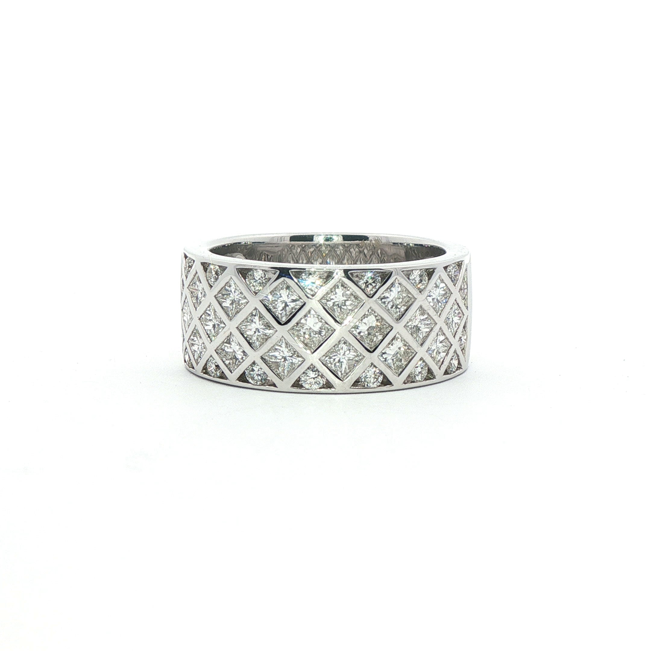 Lady's White 18 Karat Wide Pattern Band Diamond Fashion Ring Total Carat Weight: 1.57 Color: H Clarity: VS Ring Size: 7